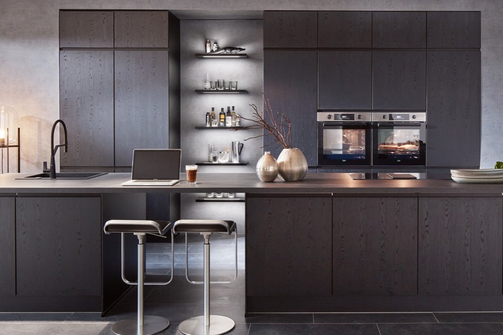 Dette flotte sorte køkken fra køkkenserien Structura har naturtro, lodret træstruktur, der giver køkkenet et utrolig elegant look. Structura-serien er utrolig robust og kan med lethed klare hverdagens strabadser i køkkenet.